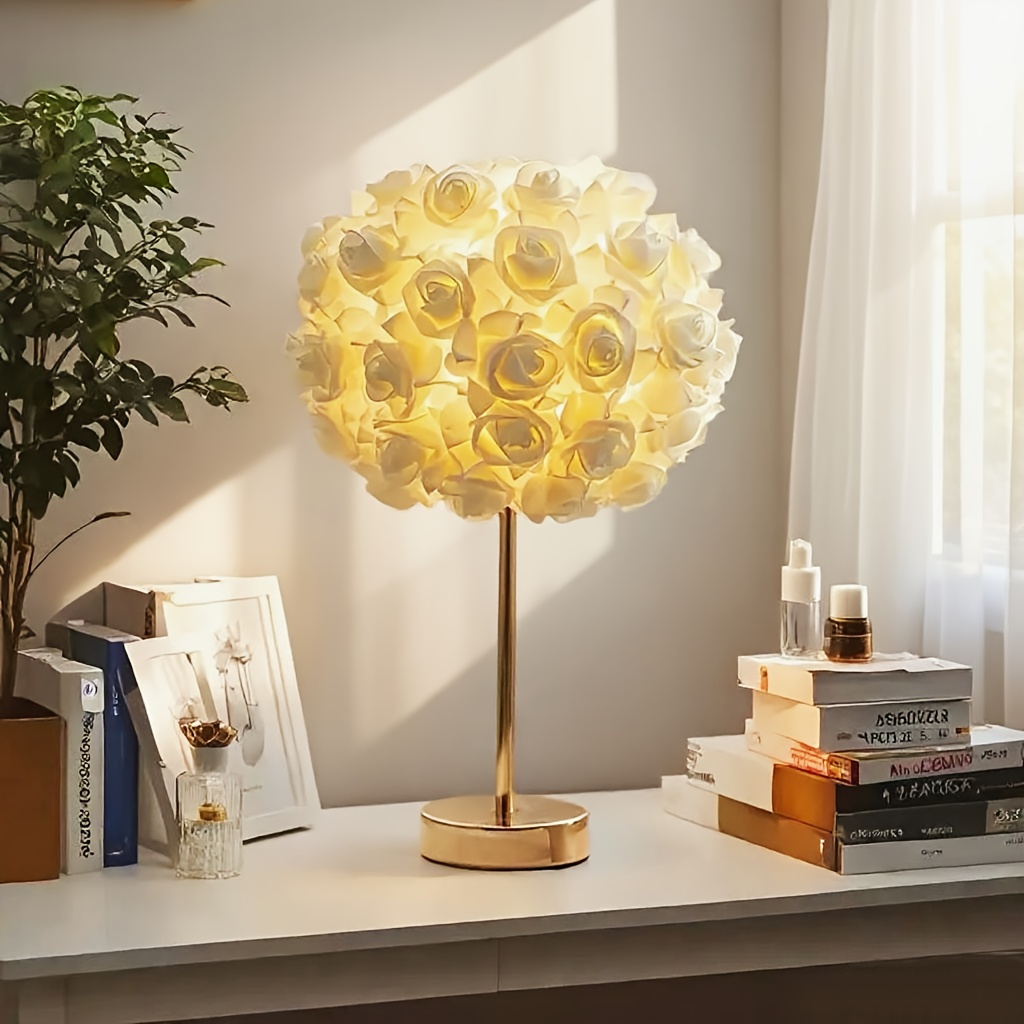 1-in-1 Rose Table Lamp with Dimmable RGB Color Changing (Pink Roses) - USB-Powered Plug-in Bulb, Metal Base & Glossy Dome Shade for Bedroom, Living Room, Weddings, Parties - Decorative Gift for &