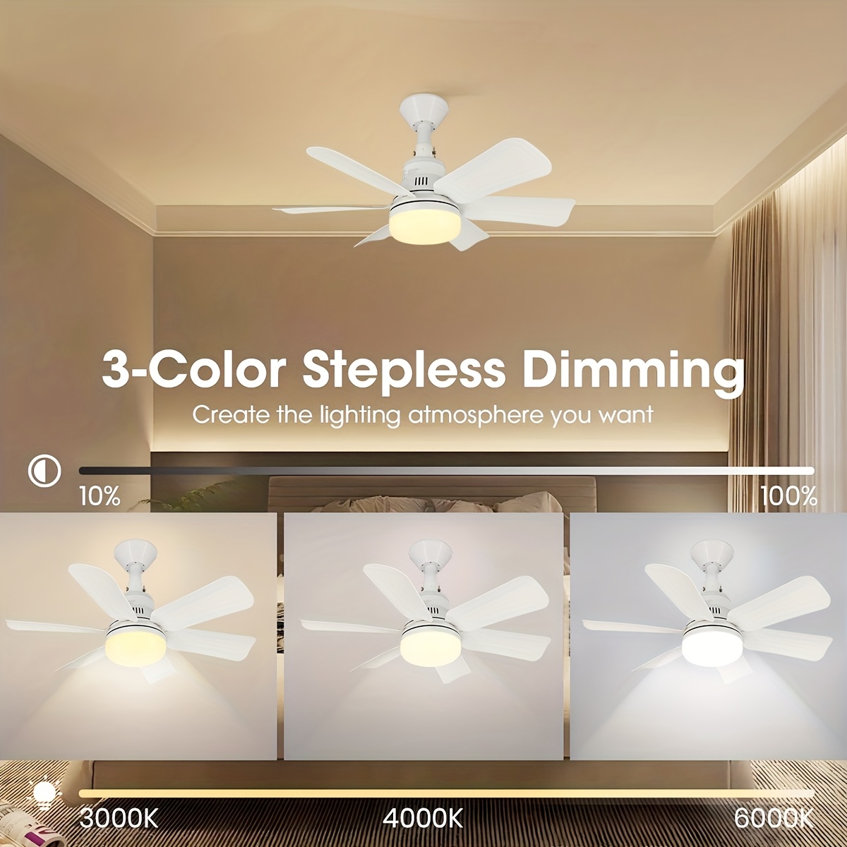 1 Set 20-Inch Modern White Ceiling Fan Light with Remote Control, 3-Speed Wind and Dimmable LED, Switchable Color Temperature, Energy-Efficient Design
