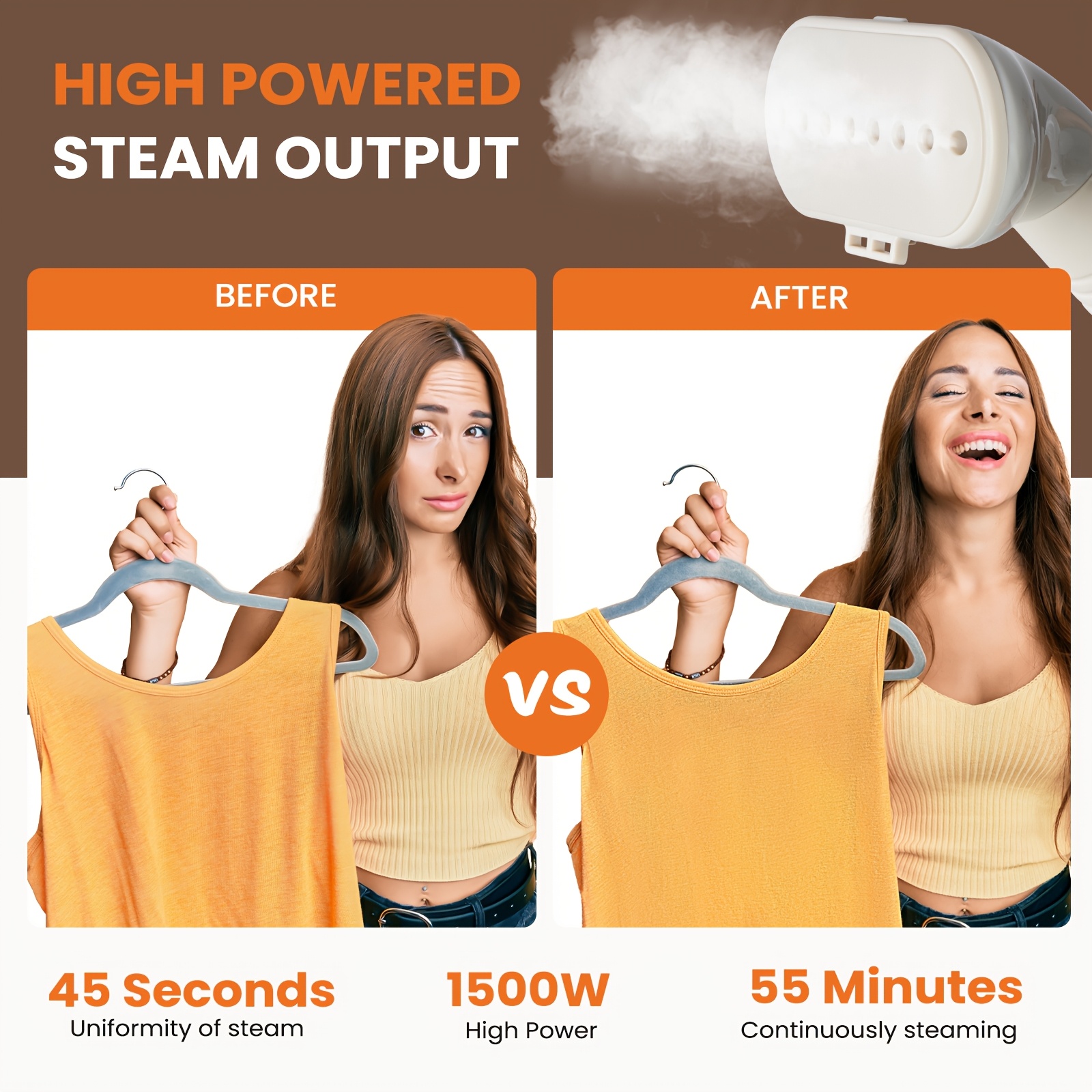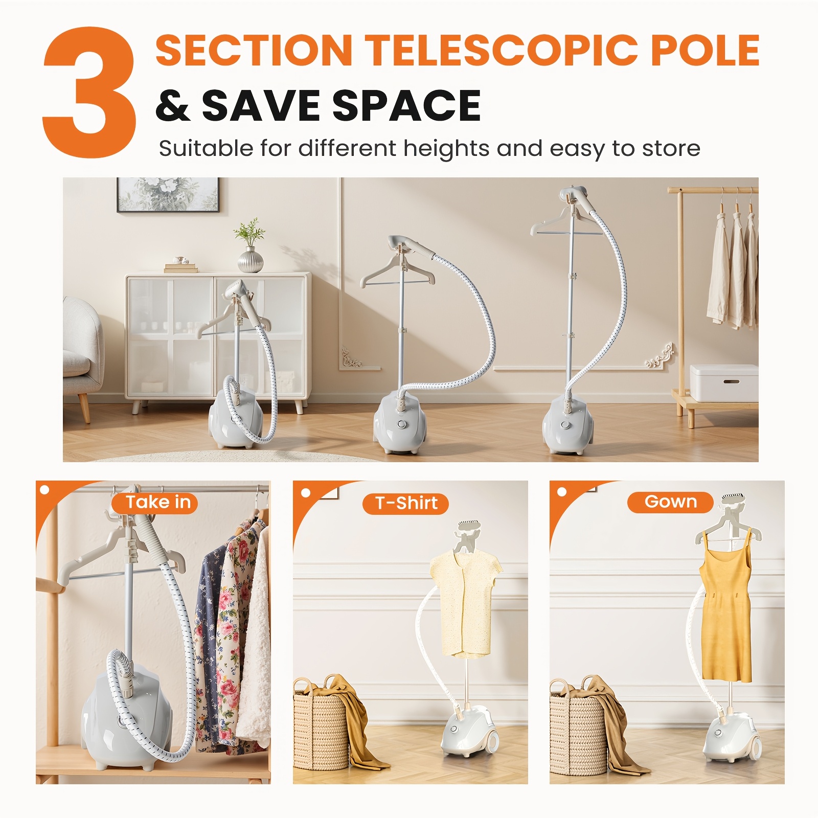 1500W Professional Garment Steamer Standing with Wheels - Heavy-Duty Clothes Steamer, 57.48oz Large Water Tank (55 Min Runtime), 45-Second Heat-Up, Wrinkle Remover for Dresses, Curtains, Bedding, -like Fabrics - Portable Standing Steamer