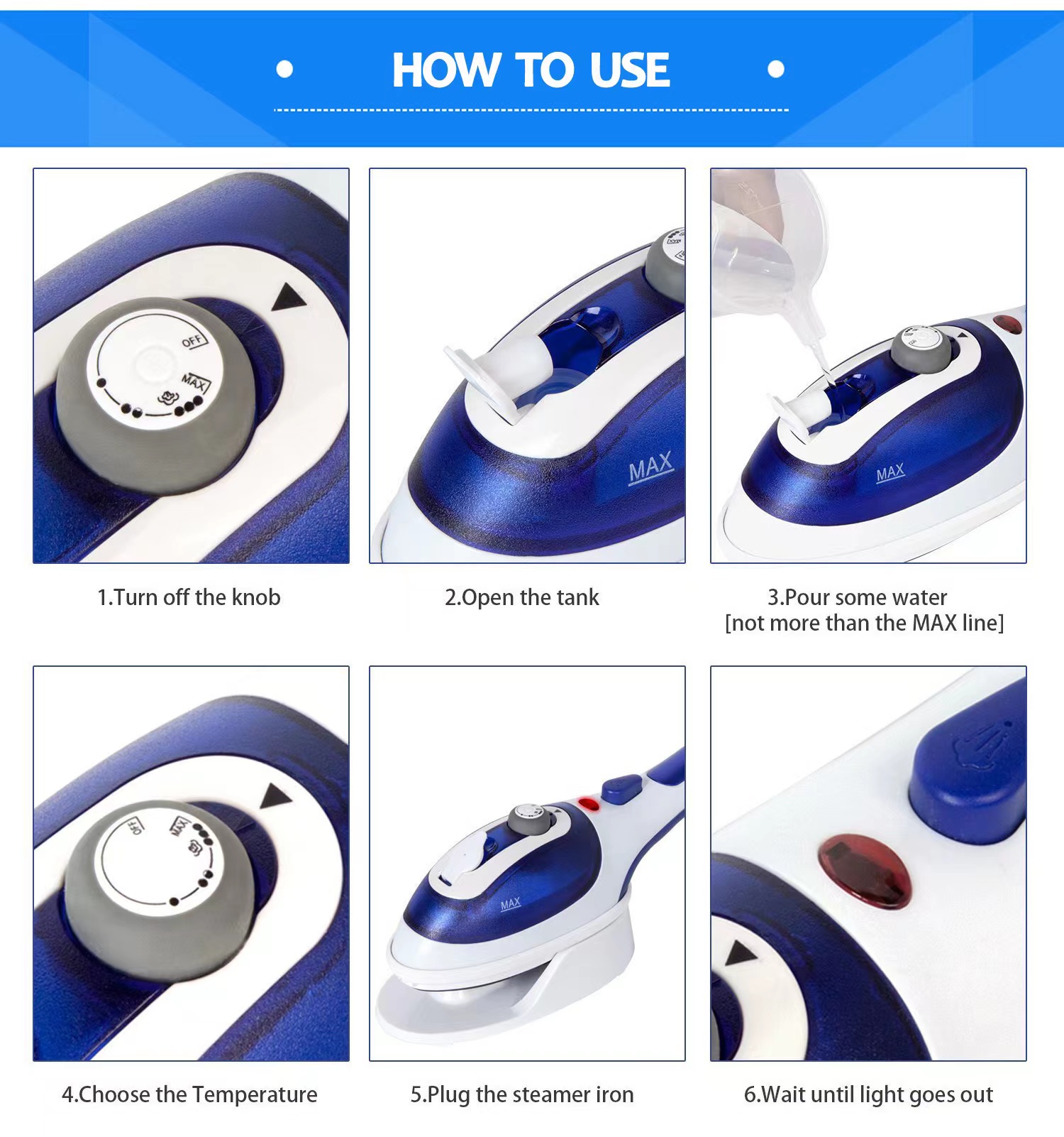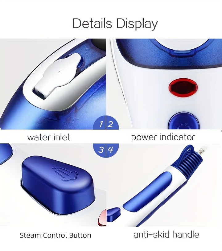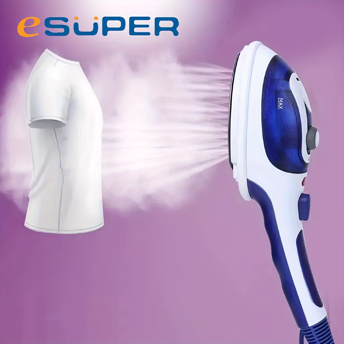 [2-in-1 Steam Iron] ESUPER 2-in-1 Travel Steam Iron | Portable, Adjustable Temperature, 800W High-Pressure Garment Steamer | Compact Design, Durable ABS Plastic, No Battery Needed, 110V-130V, US Plug, Perfect for Home & Travel Use