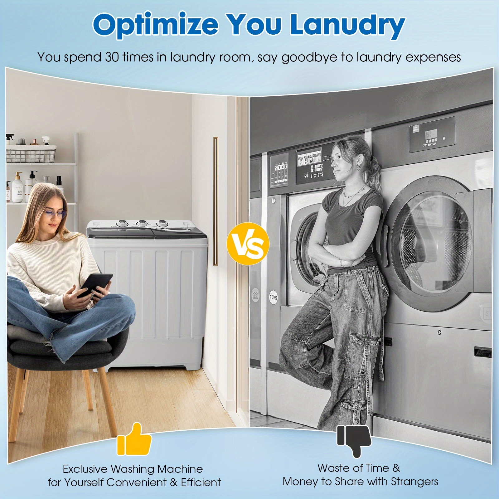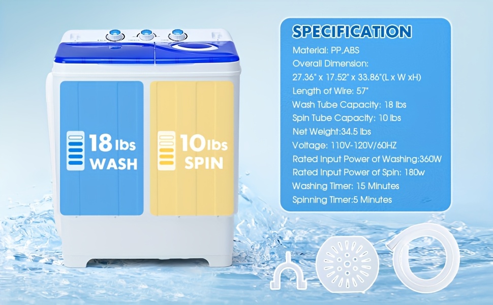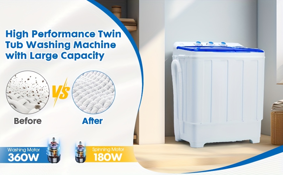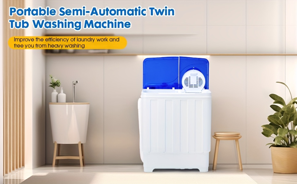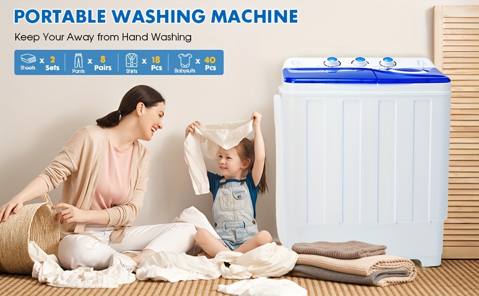 28lbs Capacity Portable Washing Machine Twin Tub - Compact Washer And Spinner Dryer Combo With Drain Pump - Semi Automatic Washing Machine For Apartments, Dorms, RVs, Camping