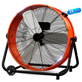 24/30" Industrial Drum Fan, 9460/14000 CFM High Velocity Floor Fan, 3 Speed Air Circulator W/180°Tilt