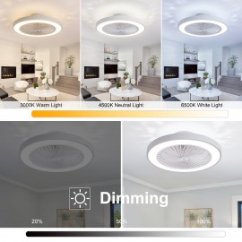 20-Inch Modern LED Ceiling Fan with Adjustable Light (3000K-6500K), Embedded Installation Design, Reversible Airflow for Enhanced Circulation – Ideal for Office, Study, Bedroom, and Indoor Spaces