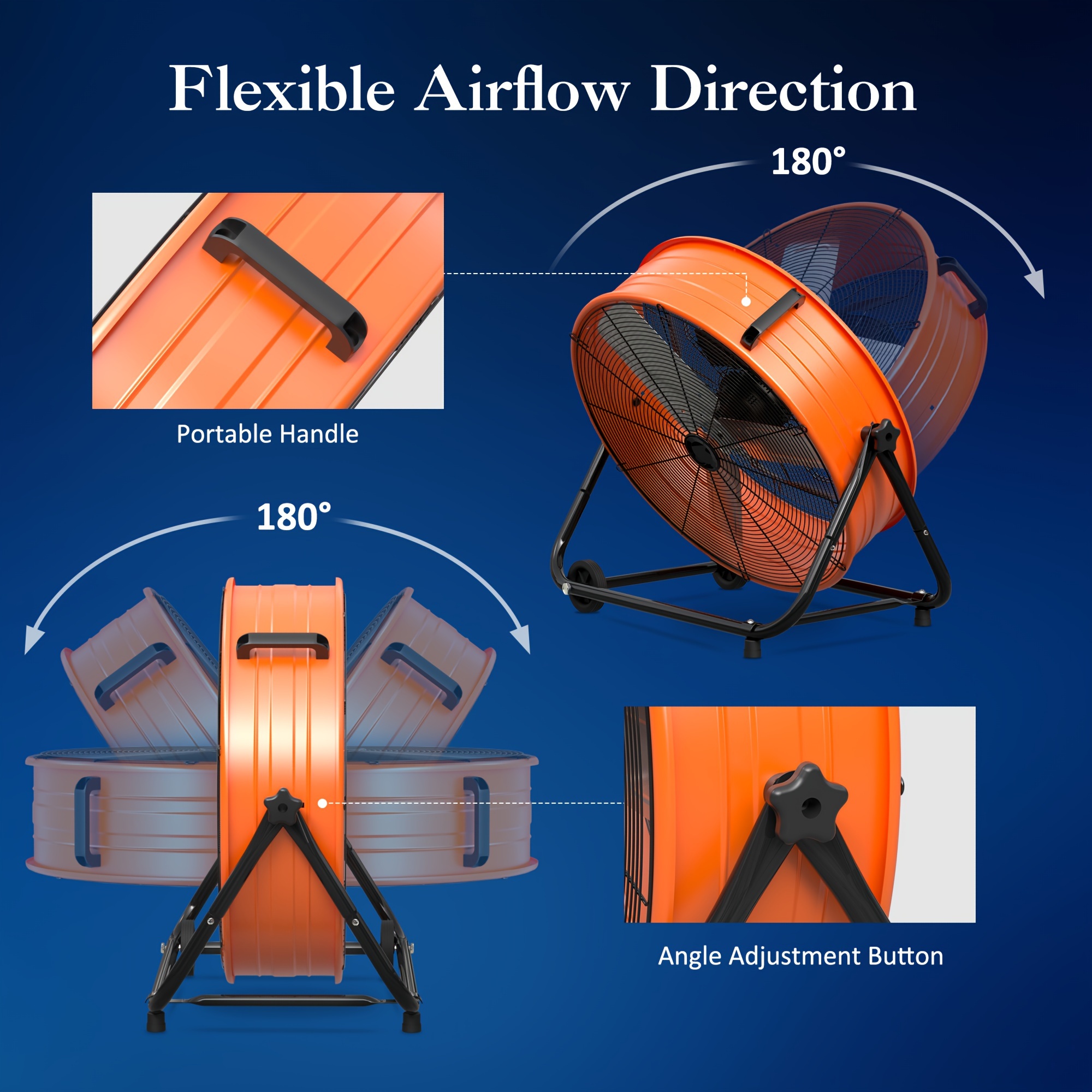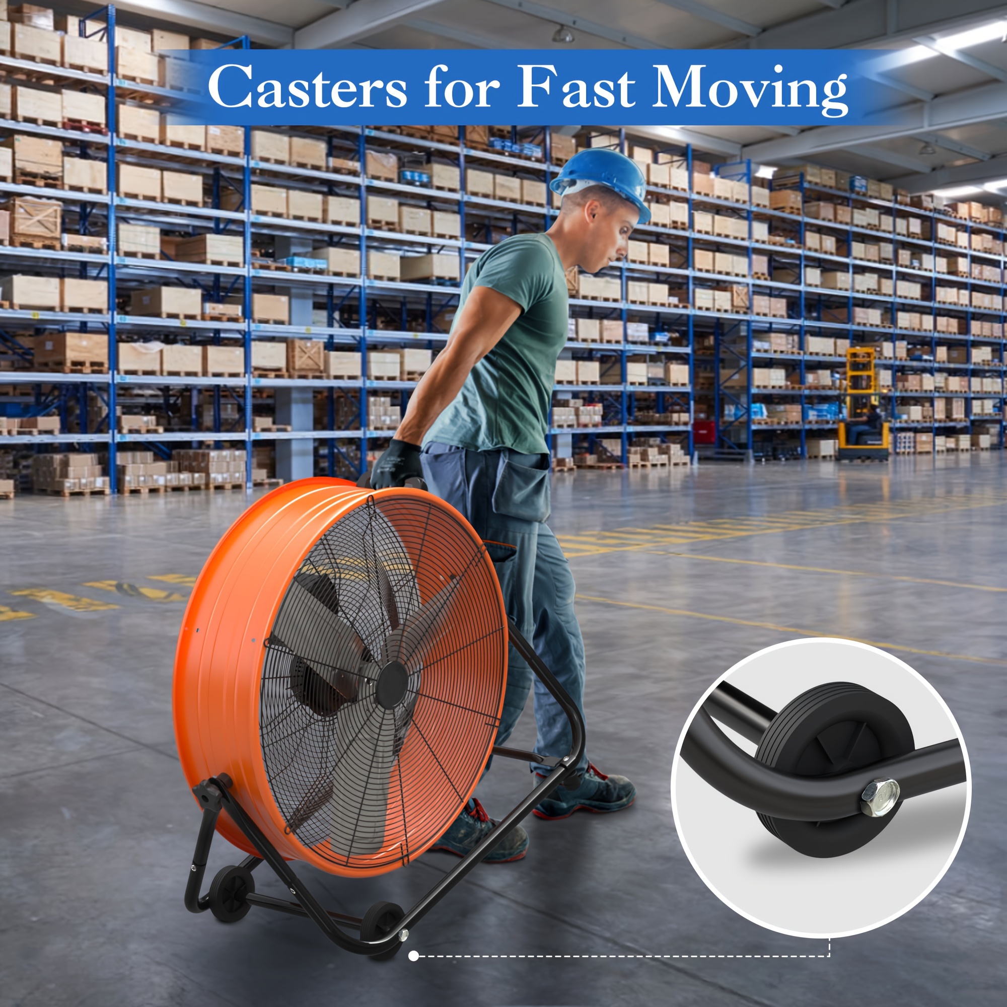 24/30" Industrial Drum Fan, 9460/14000 CFM High Velocity Floor Fan, 3 Speed Air Circulator W/180°Tilt