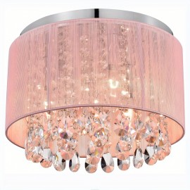 Modern Pink Crystal Chandelier – Elegant Flush Mount Ceiling Fixture with Adjustable Height, Perfect for Living Room, Bedroom, Kitchen & Bathroom, E14 Base (Bulbs Not Included)