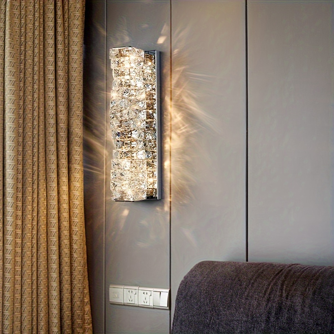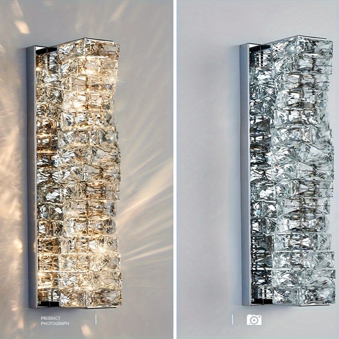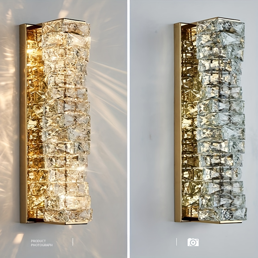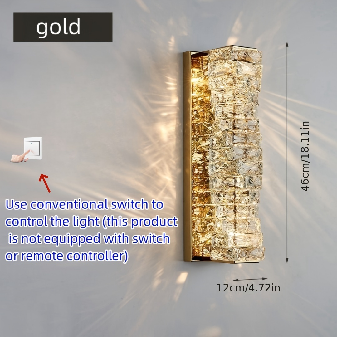 Luxury-modern gold/silver crystal wall lamp with LED three-color changing light. Suitable for bedrooms, bedside tables, corridors, etc. It is suitable for various indoor home lighting and decoration in different places. No wall switch is included.