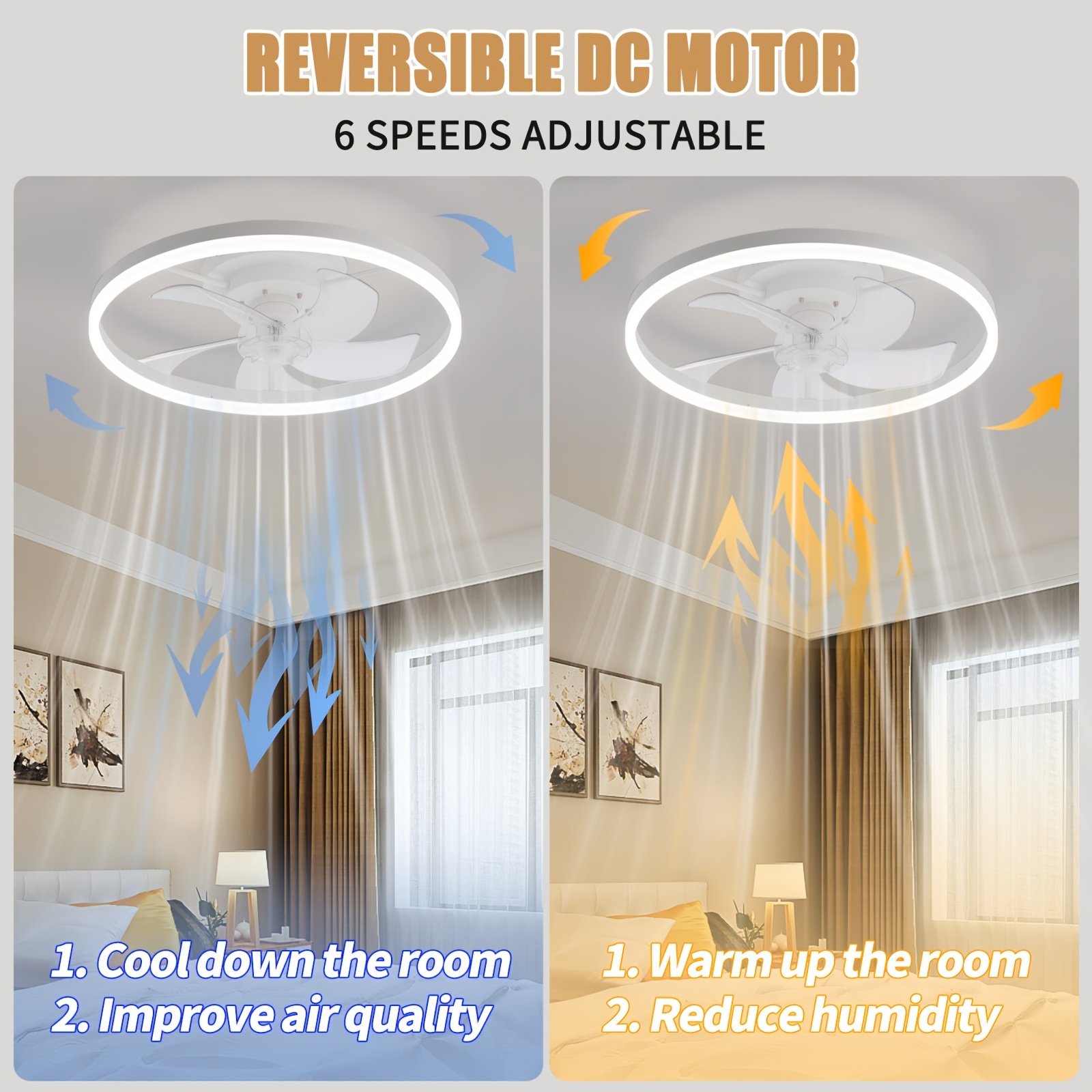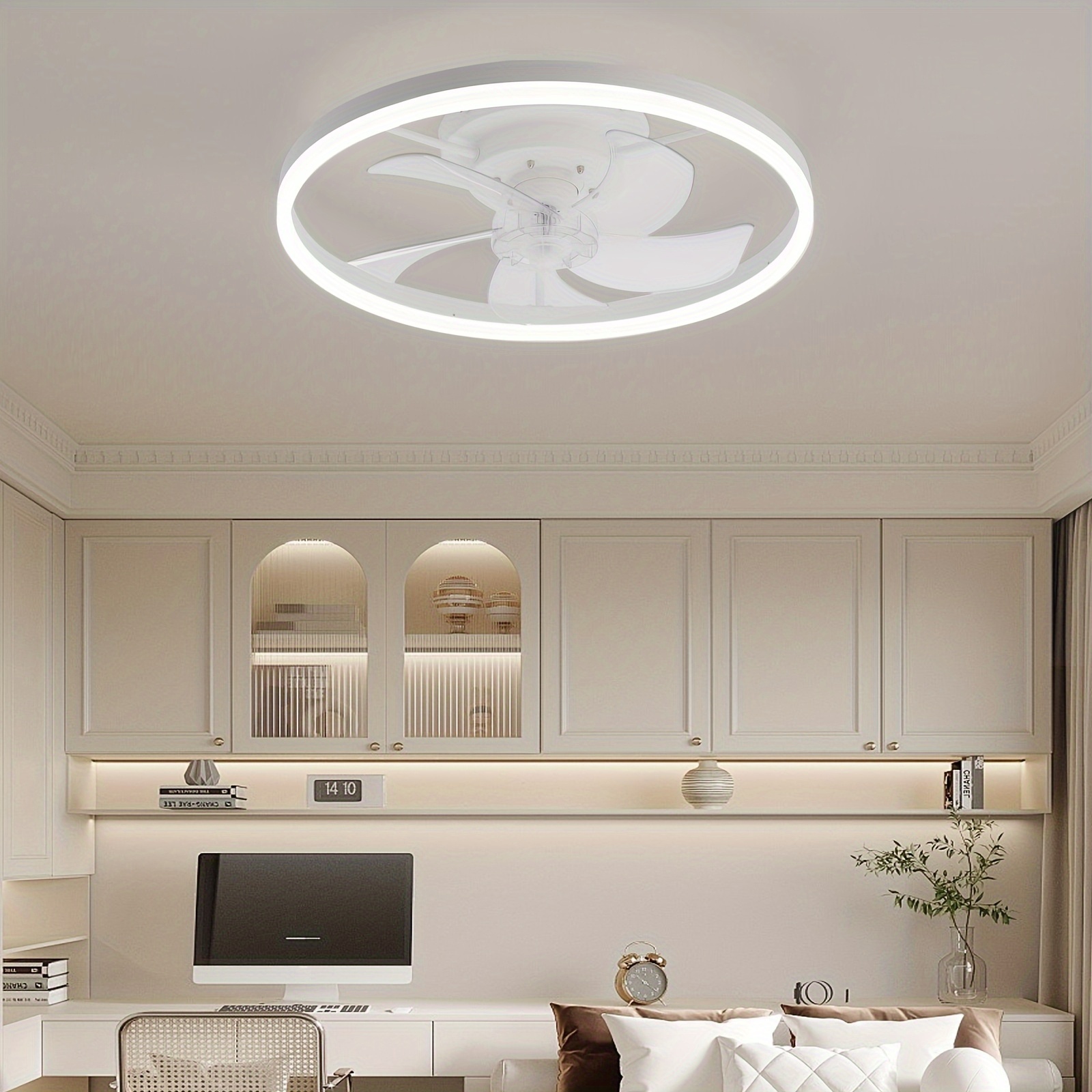 Modern embedded bladeless ceiling fan, 19.7-inch with light and remote control, dimmable 6-speed thin ceiling fan, 3000K-6500KLED fan light, suitable for bedrooms, dining rooms, and living rooms, Dining Room Fan, Home Air Circulation, Sleek Ceiling Fixture, Contemporary Lighting, Energyefficient Fan, Quiet Operation, Dimmable Lighting, Remotecontrolled Fan, Interior Designers, Home Decorators, Low Profile Ceiling Fan With Light, Ceiling Fan With Light And Remote Control,