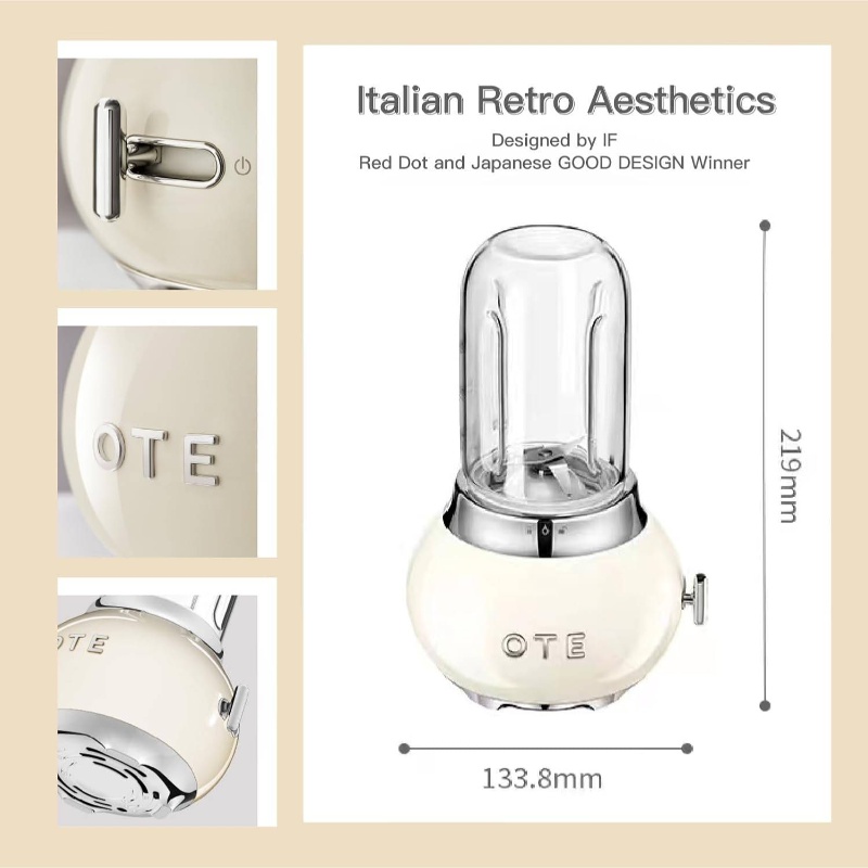 Personal Blender with 14oz Glass Jar & 4 Stainless Steel Blades - 20000 RPM Powerful Motor, BPA-Free Retro Portable Cordless Blender (Battery-Powered, Non-) for Smoothies, Shakes, Juices - Lightweight Pink Kitchen Blender with Ergonomic Handle