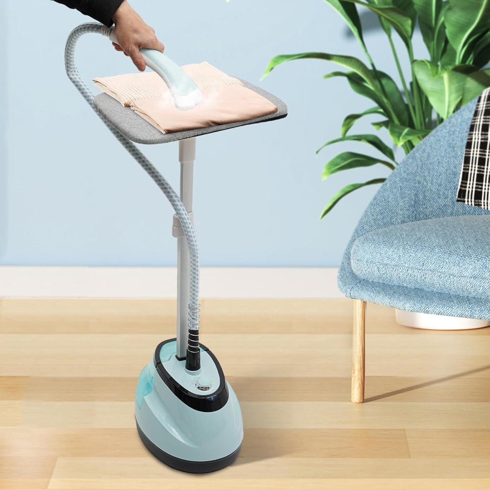 Professional 1350W Standing Garment Steamer with Ironing Board & Hanger - 45-Second Wrinkle Remover, 54.1oz Large Steam Iron for Clothes, Adjustable Height (Up to 4.85ft), Heavy-Duty Corded Steam System ( Plug, 110V)