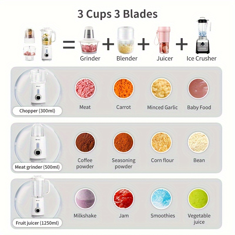 [Simplus Food Processor] Simplus Food Processor, Juicer, Dry Grinder, Ice Crusher, Includes 3 Cups, Stainless Steel Blades, for Meat Grinding, Vegetable and Fruit Juicing, Smoothies, Bean Grinding, Designed for Home Use, Food Preparation, Juicing Machine, Versatile Appliance, Compact Design, Durable Construction, Highspeed Motor, Multicup Blender, Grinding Machine, Smoothie Lovers, Cooking Hobbyists