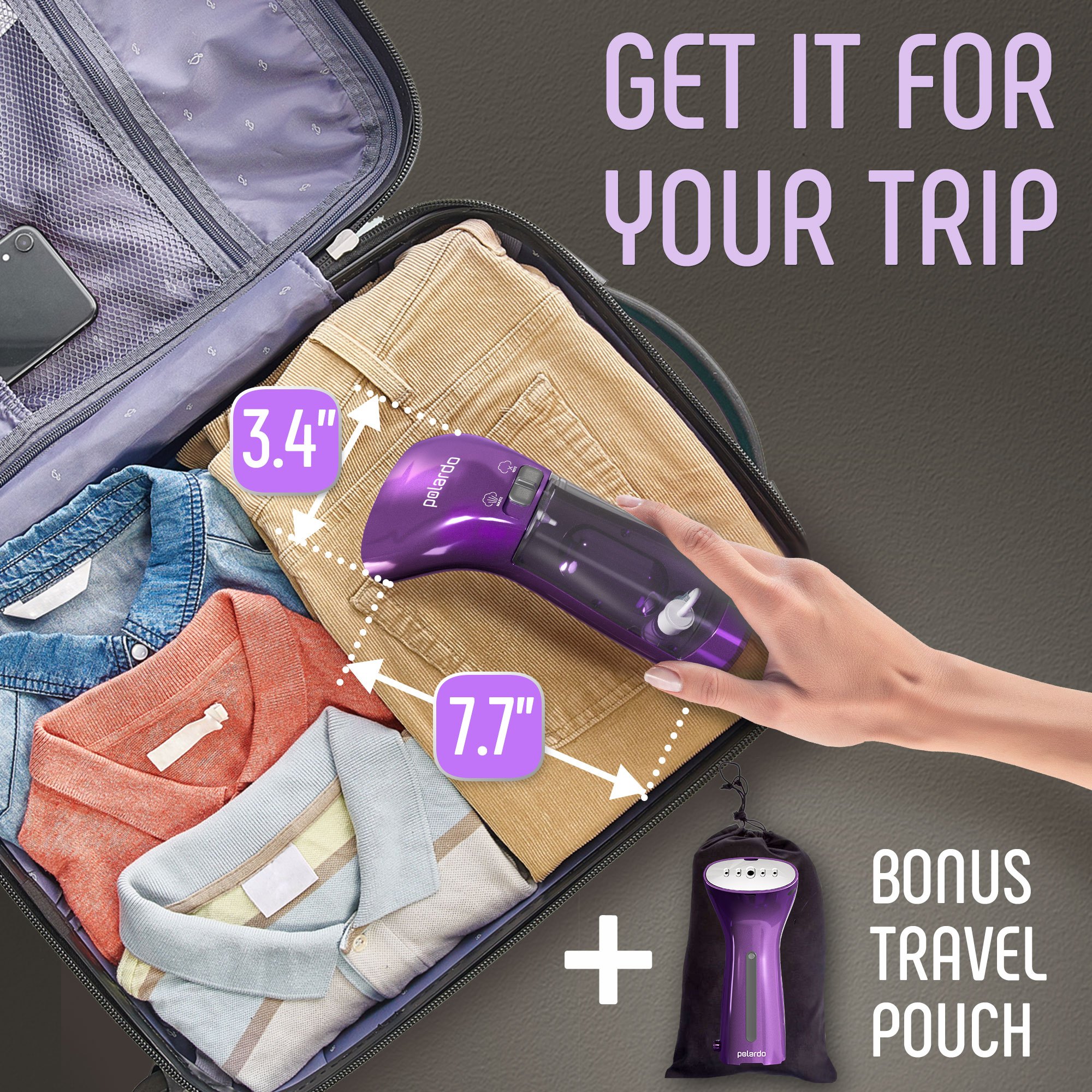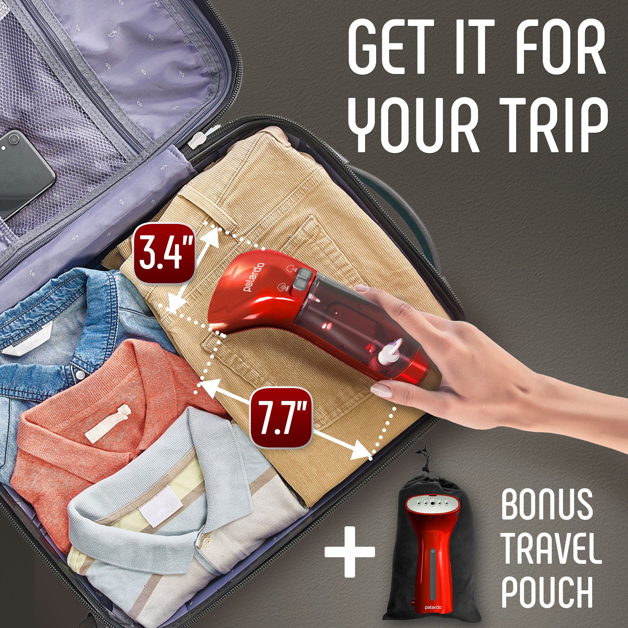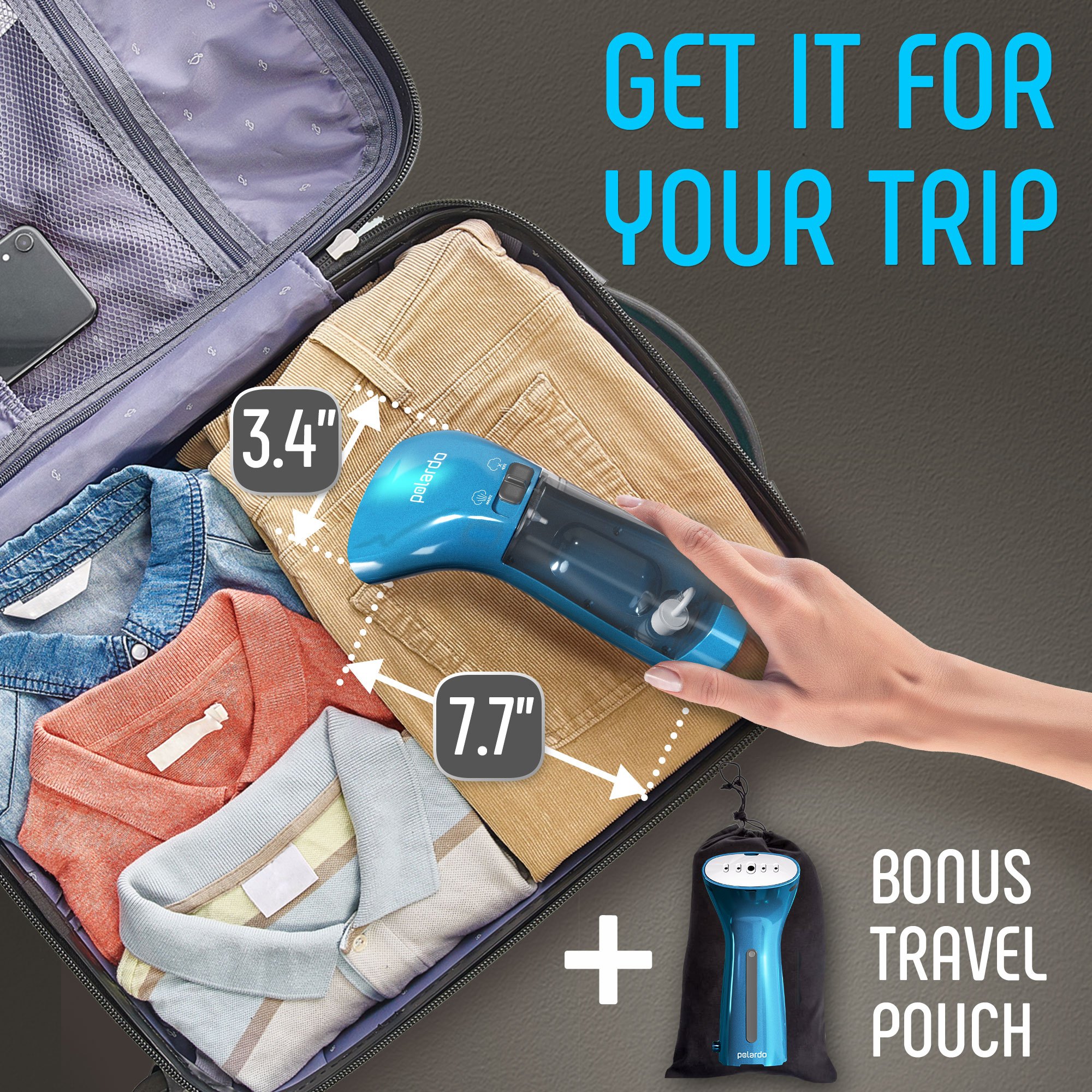 Travel Size Compact Travel Garment Steamer for Clothes to Go and Home Safe for Any Fabrics - Portable Handheld Steamer Powerful Steam Generator Iron for Clothes Best for Travel, 110V
