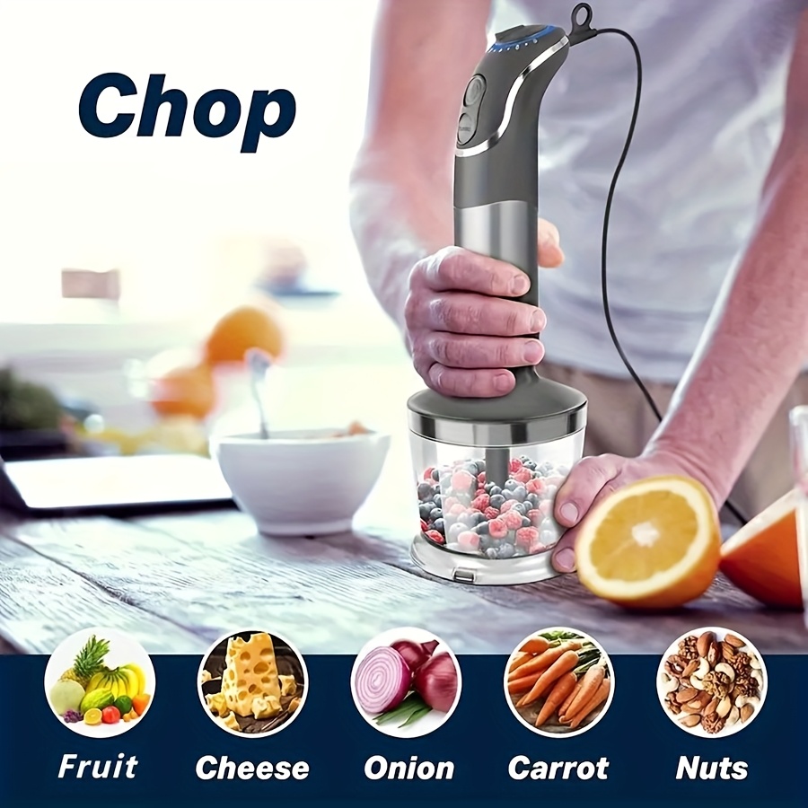 5-in-1 Handheld Blender, Hand Blender with Copper Motor and Stainless Steel Blades, Mixing Cup, Food Processor, Multifunctional Blender, Milk Frother, US Plug, Perfect for Smoothies, Purees, and More, Kitchen Blender, Puree Blender, Smoothie Maker