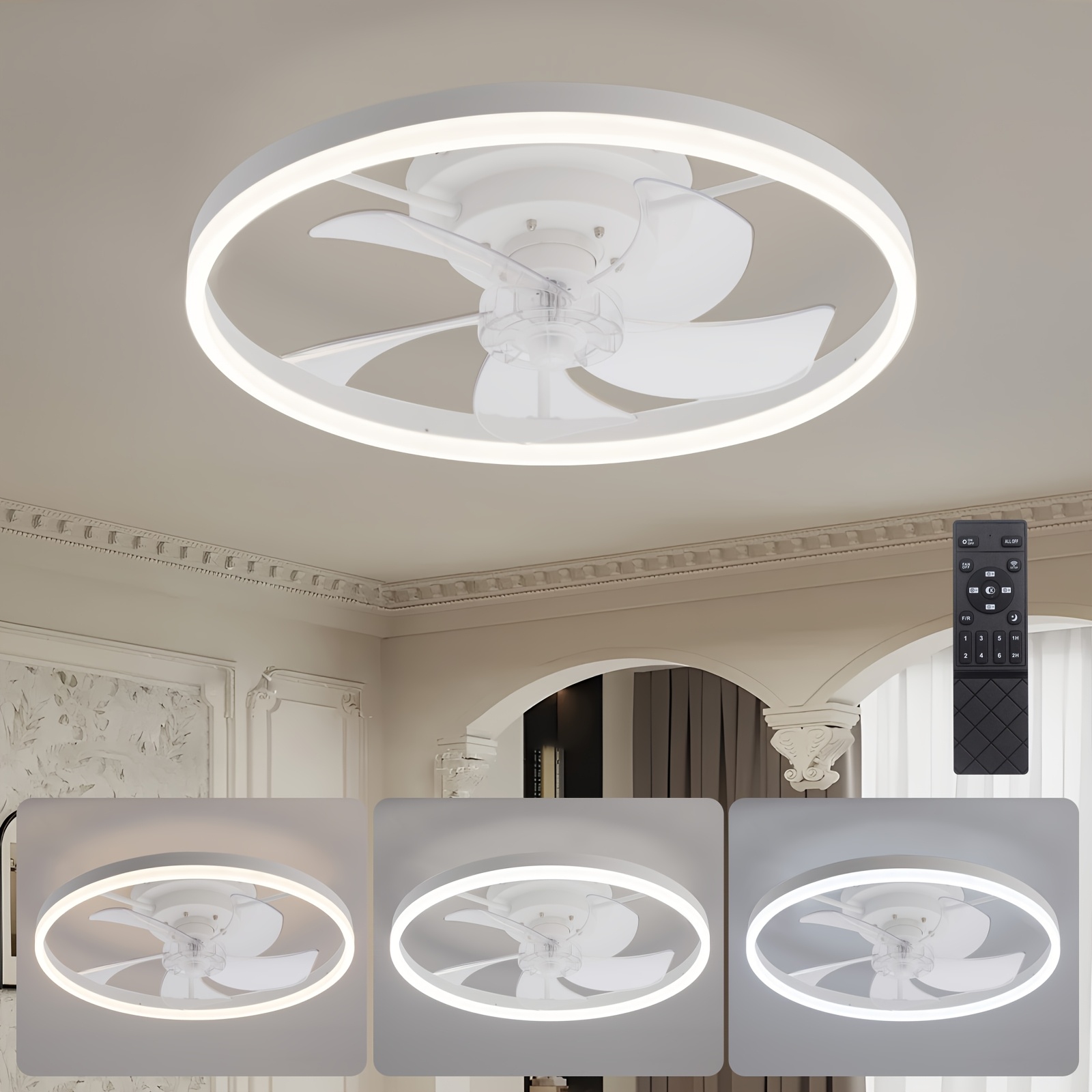 Modern embedded bladeless ceiling fan, 19.7-inch with light and remote control, dimmable 6-speed thin ceiling fan, 3000K-6500KLED fan light, suitable for bedrooms, dining rooms, and living rooms, Dining Room Fan, Home Air Circulation, Sleek Ceiling Fixture, Contemporary Lighting, Energyefficient Fan, Quiet Operation, Dimmable Lighting, Remotecontrolled Fan, Interior Designers, Home Decorators, Low Profile Ceiling Fan With Light, Ceiling Fan With Light And Remote Control,