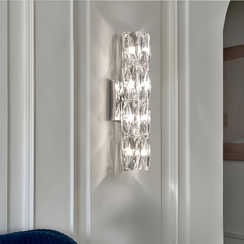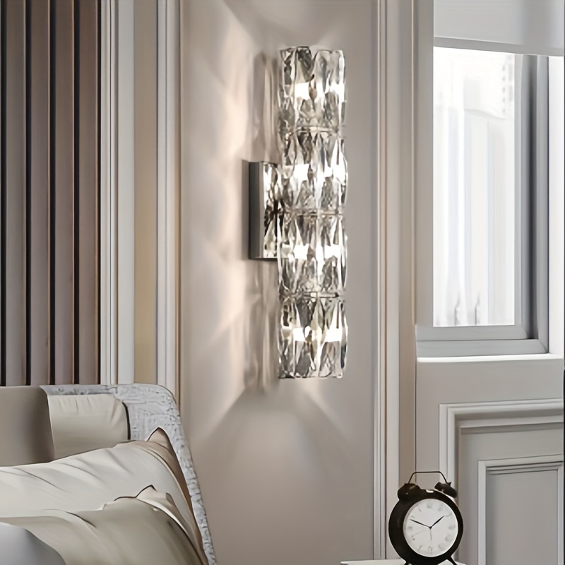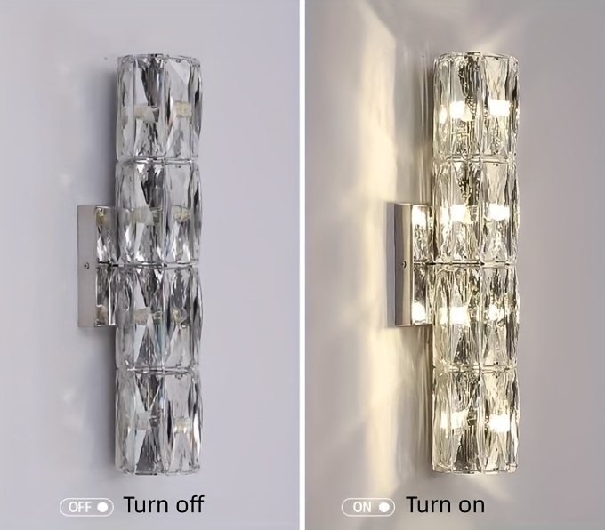 [Modern Minimalist LED] Modern Minimalist LED Wall Light | 3-Color Dimmable, Stainless Steel & Crystal Sconce, Semi-Flush Mount for Bedroom, Hallway, Bedside, Hardwired 110-240V, No Battery, Easy Installation, Contemporary Lighting, Sleek Metallic Finish, Wall Light For Living Room, Bedroom, Modern, Crystal Wall Light, Wall Lamp, Room Lamp, Indoor Wall Sconce
