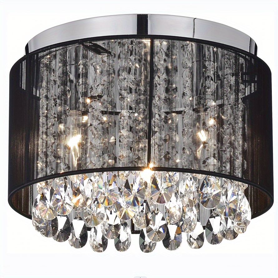 Modern Pink Crystal Chandelier – Elegant Flush Mount Ceiling Fixture with Adjustable Height, Perfect for Living Room, Bedroom, Kitchen & Bathroom, E14 Base (Bulbs Not Included)