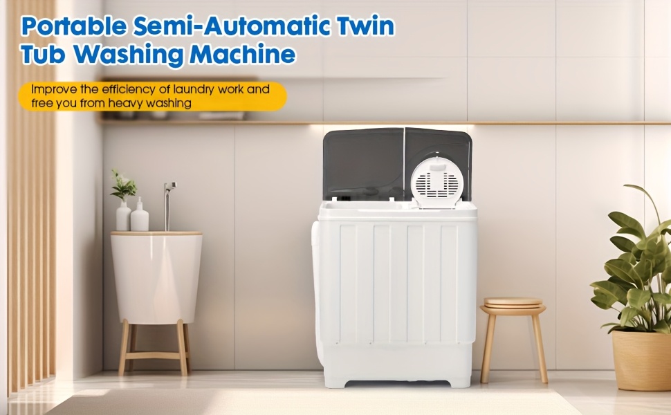 Portable Washing Machine Twin Tub - 28lbs Compact Washer(18lbs) And Dryer(10lbs) Combo with Drain Pump - Mini Laundry Machine for Apartments, Dorms, RVs, And Camping, Small Space Appliance, Lightweight Washerdryer, Spacesaving Design, Reliable